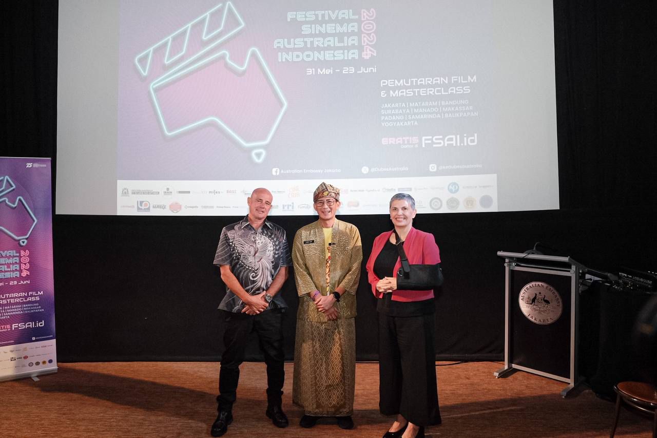 Jakarta, Dialoguejakarta.com – Menteri Pariwisata dan Ekonomi Kreatif/Kepala Badan Pariwisata dan Ekonomi Kreatif (Menparekraf/Kabaparekraf) Sandiaga Salahuddin Uno mengapresiasi pelaksanaan Festival Sinema Australia Indonesia (FSAI) sebagai upaya memperkuat kolaborasi sektor ekraf Indonesia dengan Australia, terutama di subsektor perfilman di XXI Senayan City, Jakarta Pusat, Selasa (28/5/2024)
