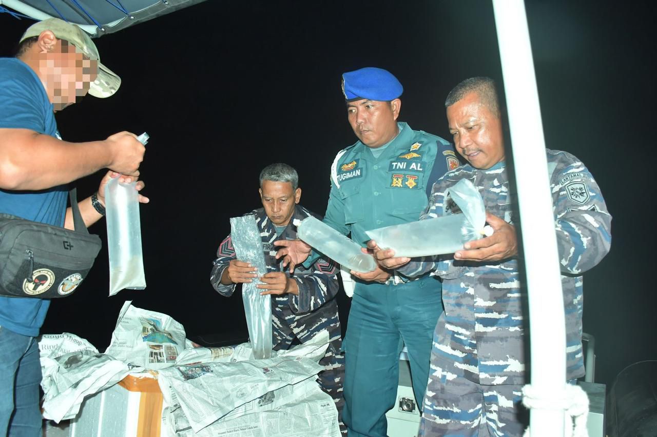 Dari hasil penangkapan tersebut TNI AL berhasil mengamankan 2 (dua) orang terduga pelaku yaitu supir berinisial DNS (32) dan kernet berinisial FAS (22) beserta barang bukti dengan jumlah total 73.033 yang dikemas dalam 14 box sterofoam dengan rincian 72.104 ekor BBL jenis Pasir dan 929 ekor BBL jenis Mutiara. Penjualan BBL mempunyai nilai ekonomi yang tinggi, dimana dari kegiatan ilegal tersebut berpotensi menimbulkan kerugian negara yang cukup besar.