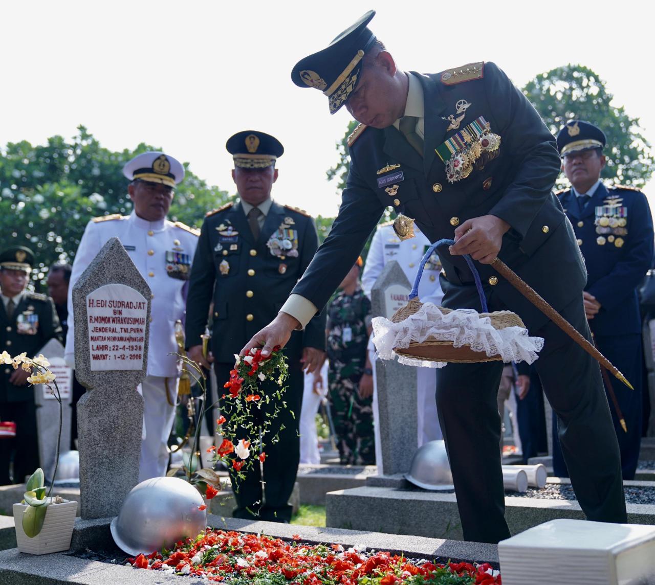 Panglima TNI didampingi Kas Angkatan selanjutnya melaksanakan tabur bunga kepada mantan Presiden BJ Habibie, mantan Panglima TNI Jenderal TNI Anumerta Edi Sudradjat, dan beberapa pahlawan dan tokoh yang berjasa pada bangsa dan negara.