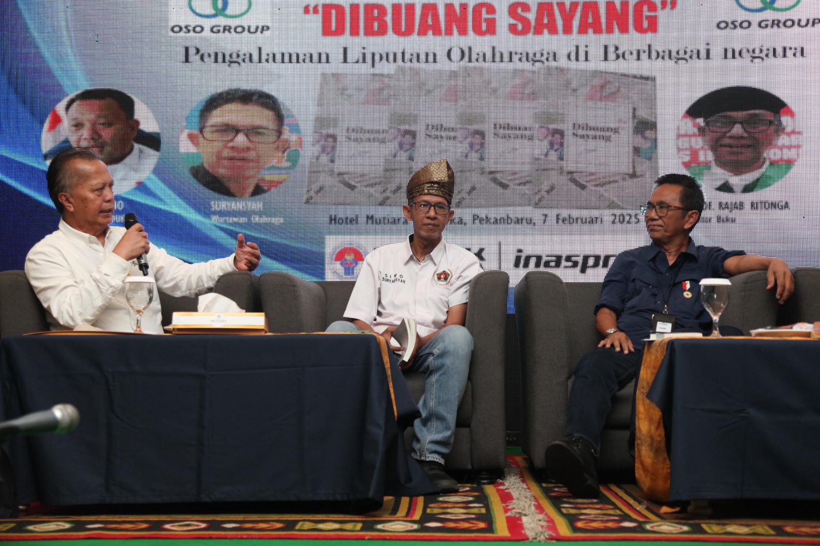 Pekanbaru, Dialoguejakarta.com — Ketua Umum Seksi Wartawan Olahraga (Siwo) Persatuan Wartawan Indonesia (PWI) Pusat, Suryansyah menluncurkan buku hasil karyanya yang berjudul Dibuang Sayang, Cerita di Balik Cerita.