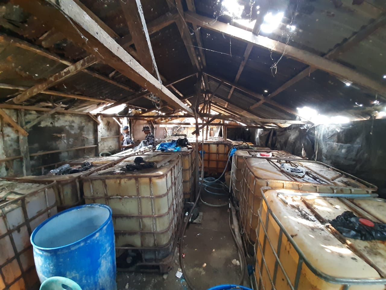 Adapun barang bukti yang ditemukan di dalam gudang penampungan yang berbentuk gubuk, yaitu tanki plastik ukuran 1 Ton dengan jumlah 30 buah, dengan rincian 29 tanki berisi masing-masing 1 ton Avtur dan 1 tanki kosong, serta 2 buah drum plastik yang masing-masing terisi +/- 220 liter Avtur. Sehingga Avtur yang berhasil diamankan total berjumlah 29.440 liter atau 29,44 Ton.