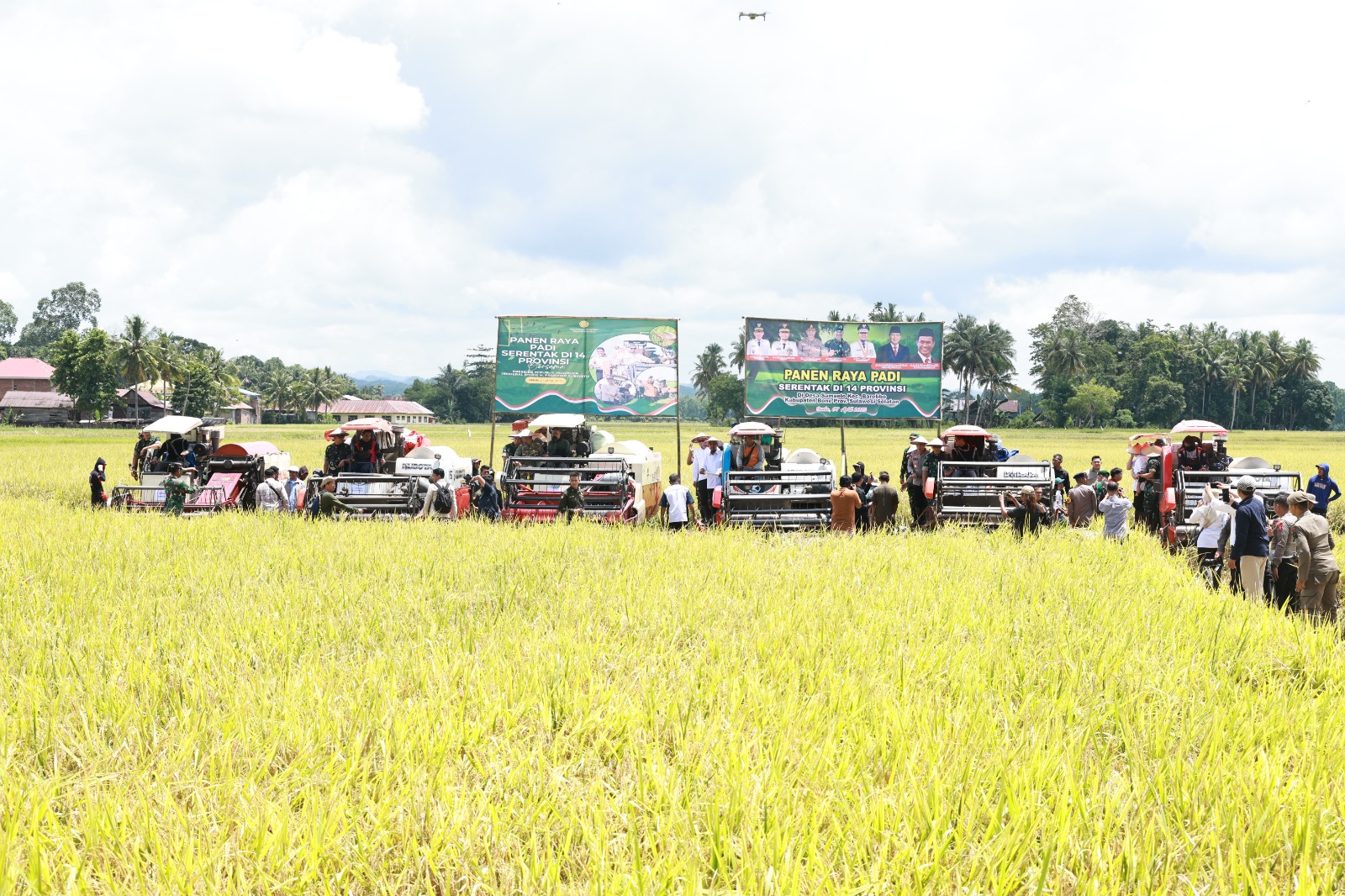Kegiatan Panen Raya di Provinsi Sulawesi Selatan dipusatkan di Kabupaten Bone yang merupakan kabupaten dengan produksi padi tertinggi di wilayah Sulsel dengan total lebih 200 ribu ton.