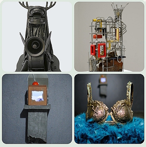 Endry menghadirkan kekacauan sistemik ini lewat dua karya patung bertanduk kayu berupa dua sosok figur dalam warna hitam gelap dalam posisi duduk berselubung citraan kain dari kepala hingga kaki. Di bagian kepala menjulur bentuk mulut dalam posisi menganga bak sedang menyuarakan sesuatu lewat perangkat pengeras suara yang di atas kayu bercabang (After School Series 1, 2, 2026).