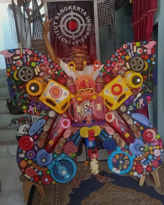 Yogyakarta, dialoguejakarta.com – Perupa seni kriya Ki Mujar Sangkerta (1966) yang dikenal lewat seni pertunjukan Wayang Milehnium Wae sedang menyiapkan karya seni instalasi dari bahan daur ulang. “Limbah sampah plastik banyak menumpuk berserakan dimana-mana, mengganggu penglihatan keindahan tata kota. Polusi sampah plastik sangat meresahkan,” ujar Ki Mujar, Rabu 15 April 2026.