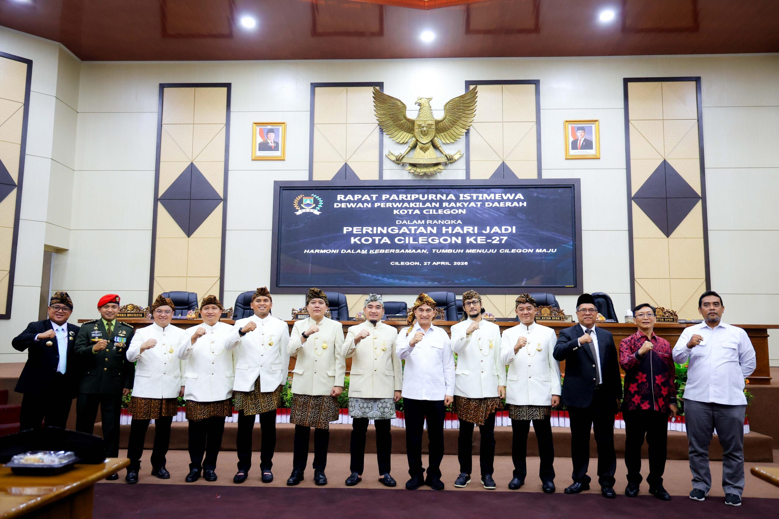 “Saya ingin kabupaten dan kota maju bersama, otomatis Provinsi Banten akan maju,” ungkap Dimyati usai Rapat Paripurna Istimewa DPRD Kota Cilegon dalam rangka Peringatan Hari Jadi Ke-27 Kota Cilegon di Gedung DPRD Kota Cilegon Jl. Jenderal Sudirman, Ramanuju, Kota Cilegon, Senin (27/4/2026).