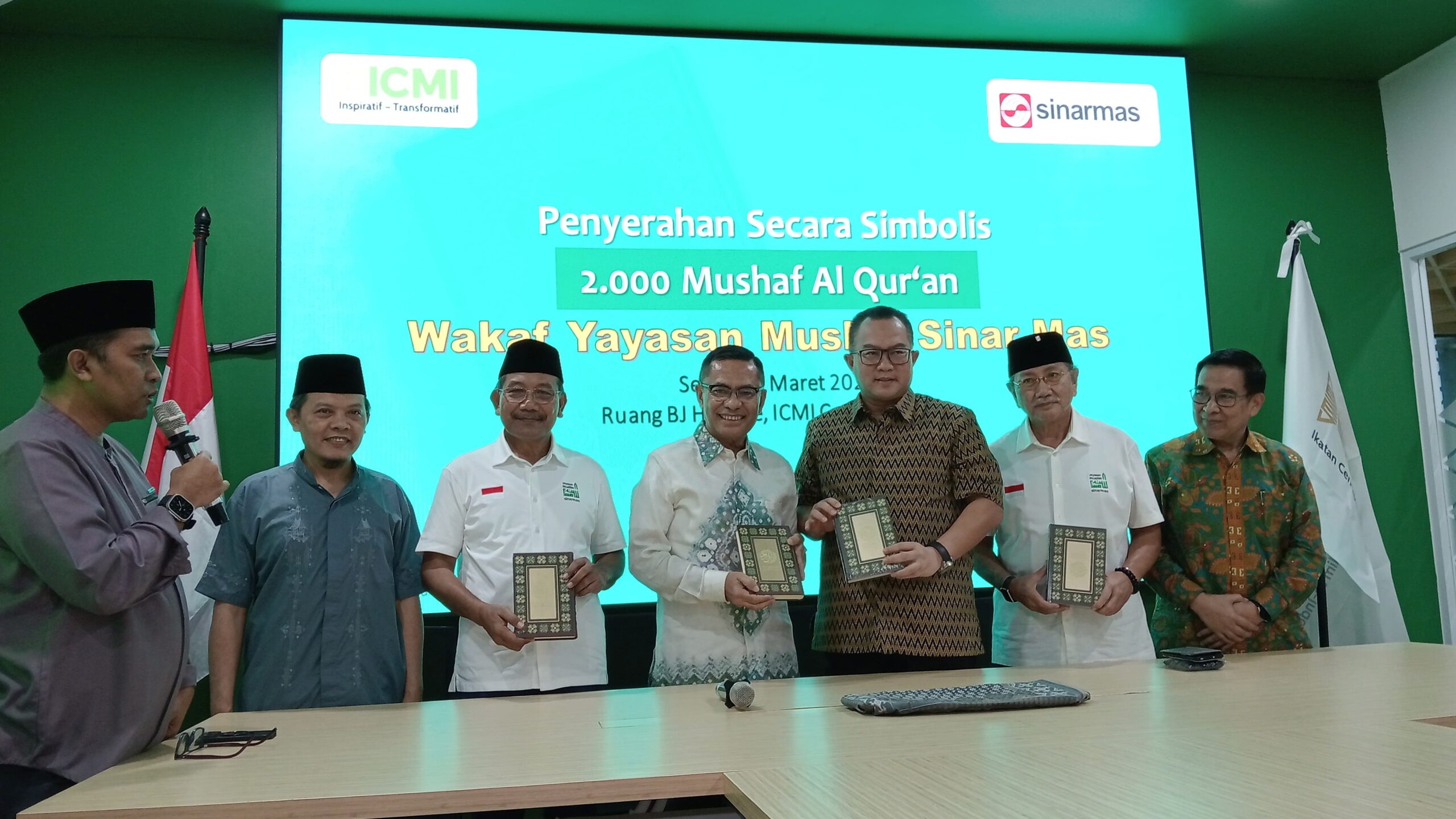 “Dengan ucapan Bismillahirahmanirahim, dua ribu mushaf dari Sinarmas kepada ICMI diserahkan Alhamdulillahi Rabbil Alamin,” demikian diucapkan Pimpinan YSMS, Saleh Husin dalam serah terima kepada Ketum ICMI.