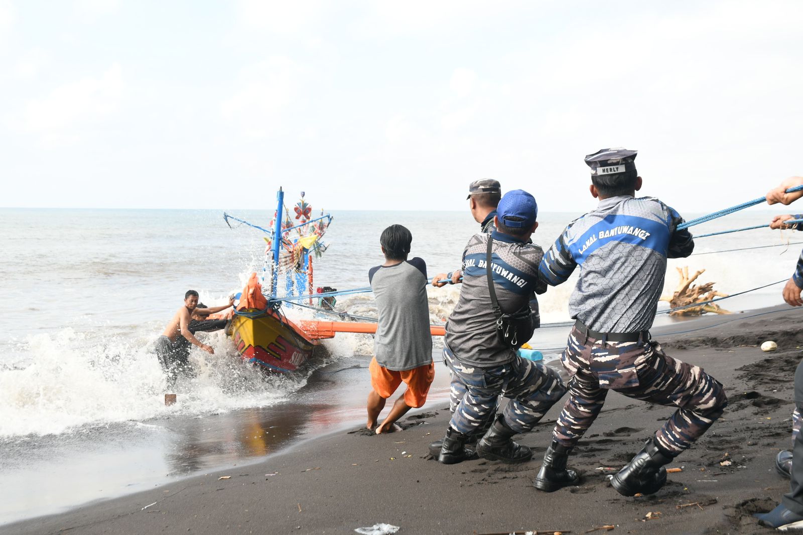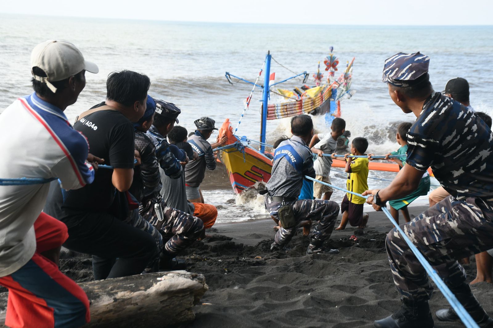 Setelah mendapatkan perintah dari Danlanal, Prajurit Lanal Banyuwangi dibantu Siswa Kodiklatal bergerak cepat menuju lokasi dan berhasil mengevakuasi korban beserta perahunya.