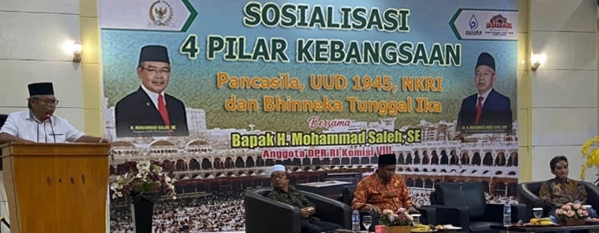 “Acara kali ini tidak saya maksudkan untuk mendiskusikan masalah penyelenggaraan haji. Meskipun tempatnya di aula asrama haji, pesertanya pengurus dan anggota IPHI Bengkulu, momentumnya juga berbarengan dengan persiapan pemberangkatan calon jamaah haji Indonesia tahun 2024, dan saya sendiri berada di Komisi VIII DPR RI yang bermitra dengan Kementerian Agama dan juga mengurus masalah haji. Semua itu hanya kebetulan. Karena acara ini adalah sosialisasi 4 pilar kebangsaan, seperti yang tertulis di spanduk besar di belakang saya,” ujar Mohammad Saleh yang disambut tepuk tangan dan tawa dari para peserta.