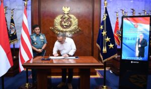 Jatim, Dialoguejakarta.com – Direktur Doktrin (Dirdok) Kodiklatal Laksma TNI Nouldy J. Tangka mewakili Komandan Kodiklatal (Dankodiklatal) Letjen TNI Marinir Nur Alamsyah menghadiri Upacara Penurunan Pengibaran Bendera Merah Putih dalam rangka Hari Ulang Tahun Ke-79 Kemerdekaan Republik Indonesia Tahun 2024, dengan mengusung tema, “Nusantara Baru Indonesia Maju”, yang digelar oleh Pemerintah Provinsi Jawa Timur, bertempat di Gedung Negara Grahadi Jl. Gubernur Suryo No. 7 Surabaya. Sabtu (17/08/2024).