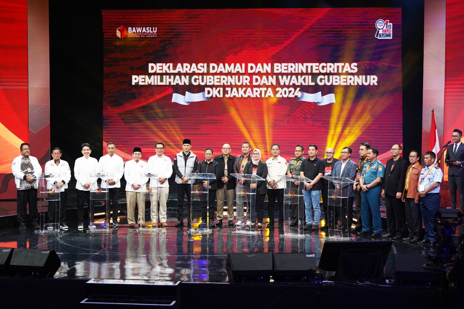 Dalam kesempatan tersebut Pasangan Calon Gubernur dan Wakil Gubernur DKI Jakarta membacakan dan menandatangani Naskah Komitmen Bersama Deklarasi Damai dan Berintegritas Pemilihan Gubernur dan Wakil Gubernur DKI Jakarta tahun 2024 yang berbunyi sebagai berikut: