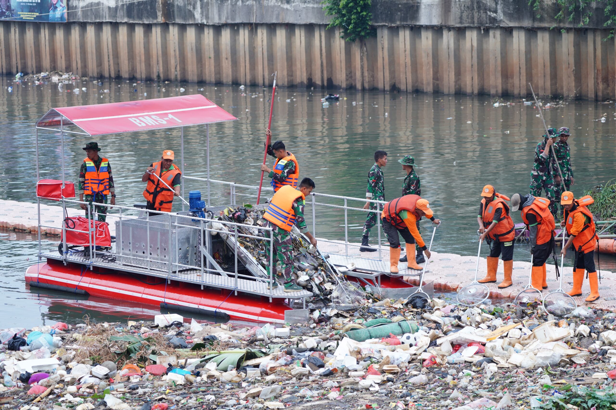 TNI Gelar Karya Bakti Ciliwung Bening Dalam Rangka HUT Ke-79 TNI