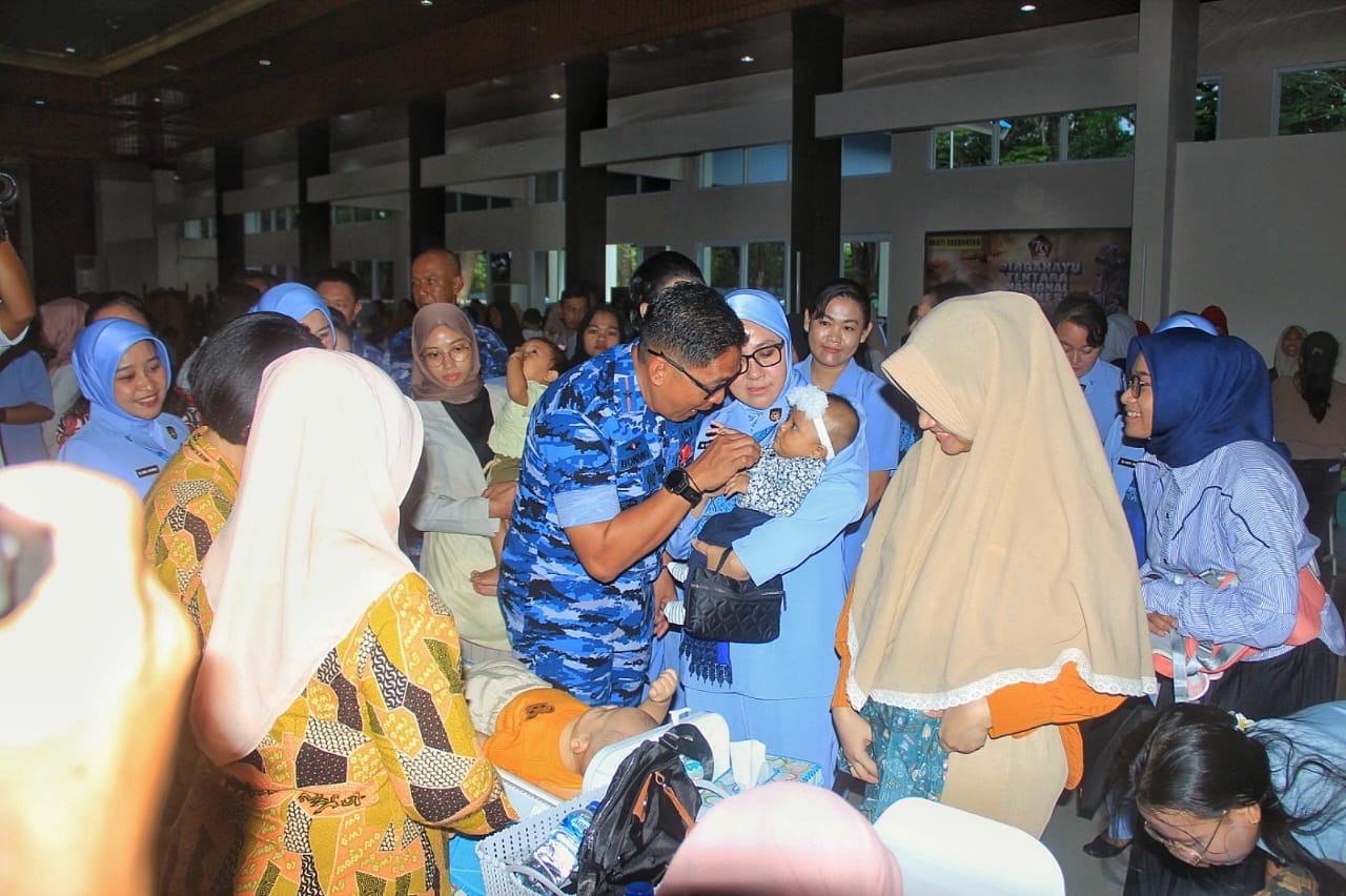 Makassar, Dialoguejakarta.com – Komandan Lanud (Danlanud) Sultan Hasanuddin Marsma TNI Bonang Bayuaji didampingi Ketua PIA Ardhya Garini Cabang 7/D.ll Lanud Sultan Hasanuddin Ny. Liska Bonang Bayuaji menghadiri acara Karya Bakti sebagai wujud kepedulian dalam membantu program pemerintah menekan angka stanting, di Gedung Serba Guna (GSG) Lanud Sultan Hasanuddin, Makassar, Rabu (16/10/2024).
