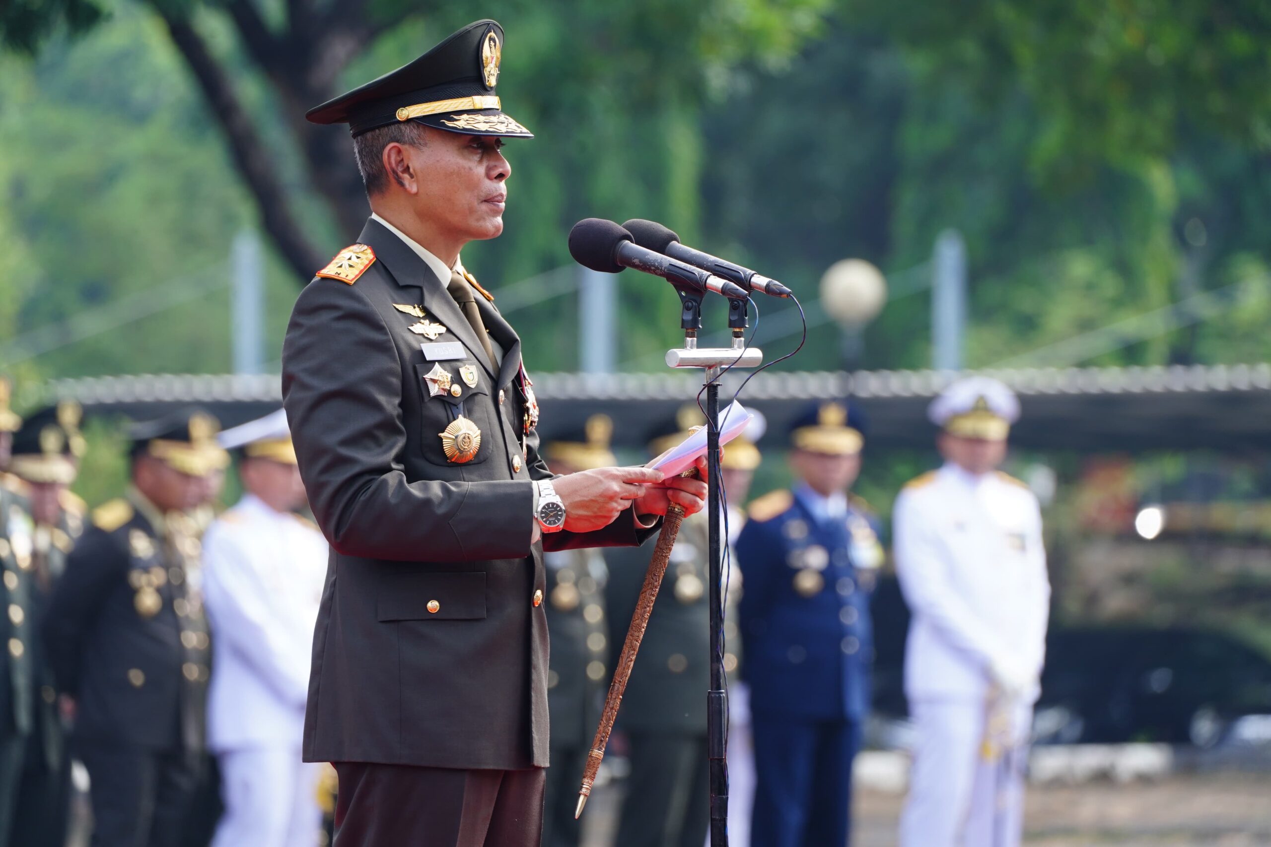 Jakarta, Dialoguejakarta.com – Markas Besar Tentara Nasional Indonesia (Mabes TNI) menggelar upacara memperingati Hari Pahlawan Tahun 2024 yang bertemakan “Teladani Pahlawanmu, Cintai Negerimu”. Bertindak selaku Inspektur Upacara Komandan Pusat Polisi Militer (Danpuspom) TNI Mayjen TNI Yusri Nuryanto, S.I.P., di Lapangan Upacara Mabes TNI, Cilangkap, Jakarta Timur, Minggu (10/11/2024).