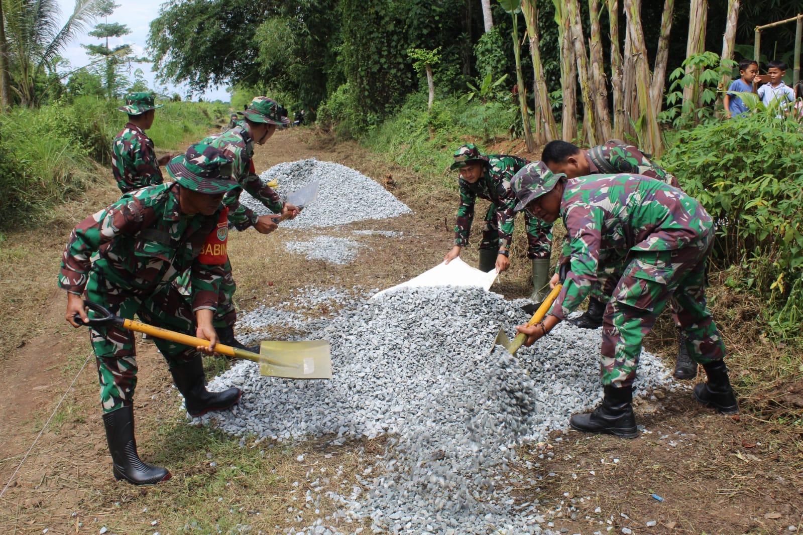 Lanjutnya, selain pembangunan jalan, kegiatan ini juga melibatkan partisipasi aktif masyarakat setempat, yang bahu-membahu bersama personel TNI, dalam proses pengerjaan. Diharapkan, semangat gotong royong ini, semakin mempererat kemanunggalan antara TNI dan rakyat.