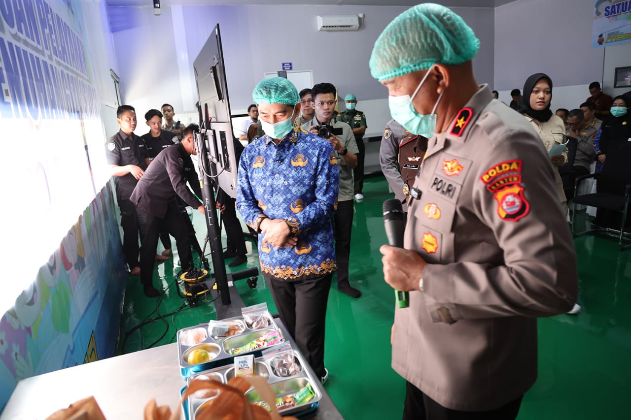 Wakil Gubernur Banten A Dimyati Natakusumah bersama Wakil Kepala Kepolisian Daerah (Wakapolda) Banten Brigjen Pol Hengki beserta jajaran hadiri Peresmian Operasional Satuan Pelayanan Pemenuhan Gizi (SPPG) Kepolisian Republik Indonesia (Polri) secara virtual di lokasi SPPG Polda Banten Jl Serang – Cilegon, Drangong Taktakan, Kota Serang, Senin (17/3/25). SPPG Polda Banten termasuk satu di antara empat SPPG proyek percontohan dari 20 SPPG yang diresmikan.