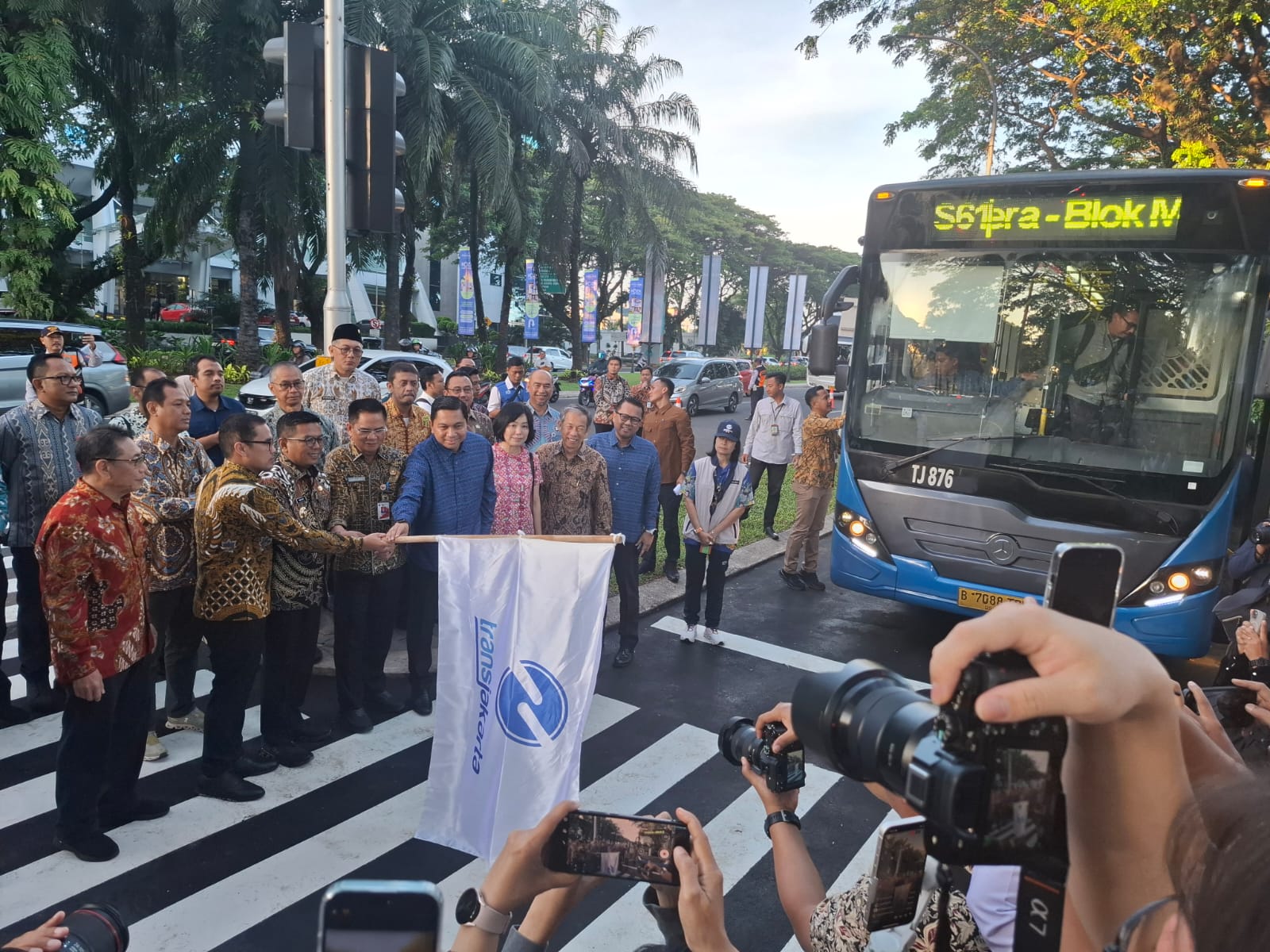 BANTEN, diakoguejakarta.com – Gubernur Banten Andra Soni melepas keberangkatan perdana rute baru Transjabodetabek Blok M – Alam Sutera dalam seremoni flag off di Halte Alam Sutera, Jl. Alam Sutera Boulevard No.21, Kelurahan Pakulonan, Kecamatan Serpong Utara, Kota Tangerang Selatan, pada Rabu (23/4). Rute Blok M – Alam Sutera merupakan bagian dari perluasan jaringan Transjabodetabek untuk mengintegrasikan layanan transportasi antar wilayah.