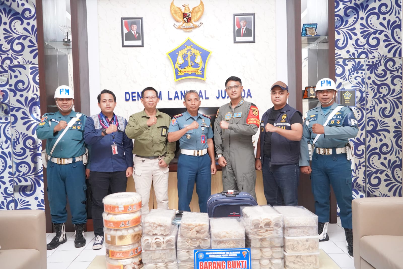 Hasil analisa dan pemeriksaan fisik ditemukan dua koper bagasi berisi 26 box paket sarang burung walet dengan berat bruto 21,61 Kg tanpa dilengkapi dokumen resmi yang selanjutnya diamankan di kantor Denpom Lanudal Juanda.