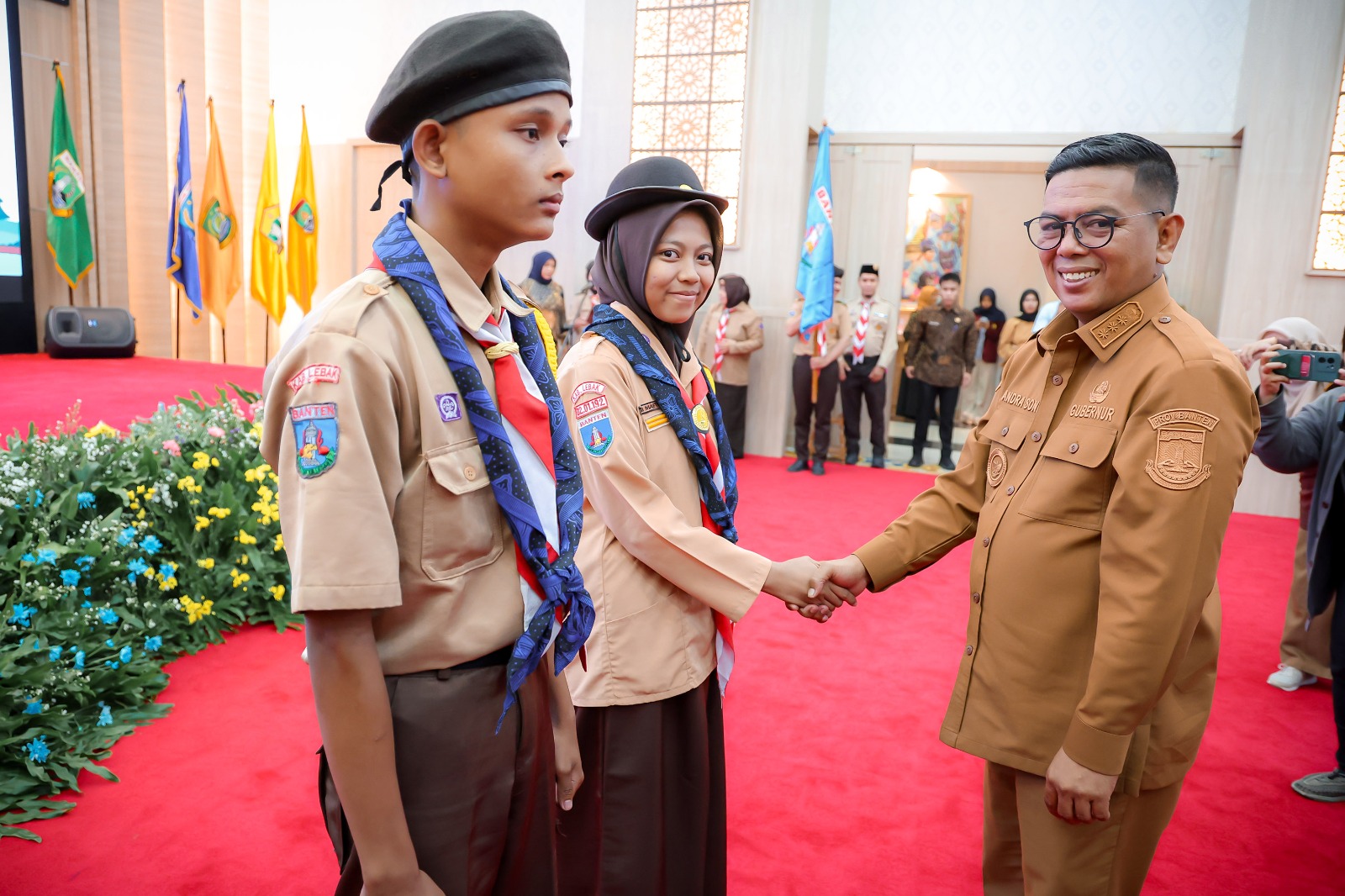 BANTEN, dialoguejakarta.com – Gubernur Banten Andra Soni melepas Kontingen Pramuka Berkebutuhan Khusus Provinsi Banten yang akan mengikuti Perkemahan Pramuka Berkebutuhan Khusus Nasional (PPBKN) Tahun 2025 di Bumi Perkemahan Pramuka Cibubur, Jakarta, pada 13–19 Agustus 2025. Pelepasan dilakukan di Pendopo Gubernur Banten KP3B Curug, Kota Serang, Selasa (12/8/2025).