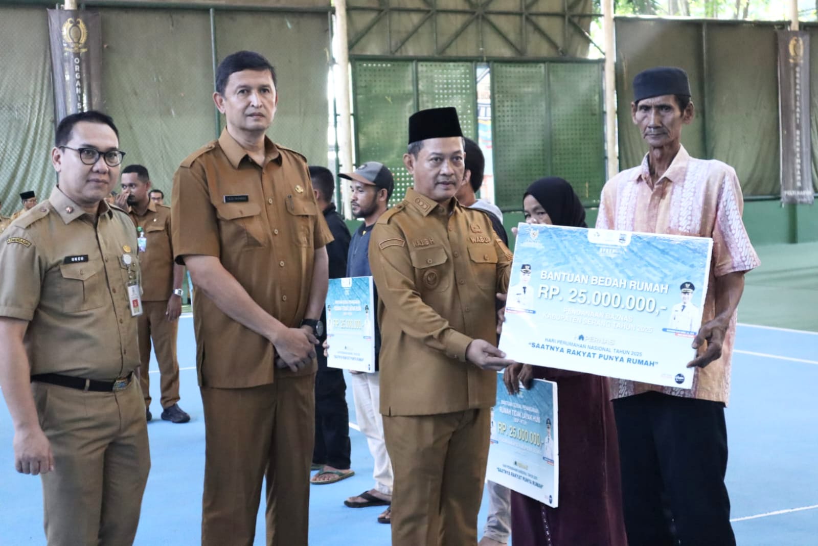 Penyerahan dilakukan usai Wabup Najib Hamas menjadi Inspektur Upacara Peringatan Hari Perumahan Nasional (Hapernas) ke 17 Tahun 2025.