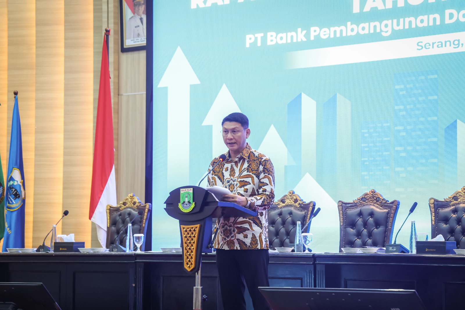 Sekretaris Daerah (Sekda) Deden Apriandi menegaskan Pemerintah Provinsi (Pemprov) Banten mendukung berbagai langkah strategis yang dilakukan PT Bank Pembangunan Daerah Banten (Perseroda) Tbk dalam memperkuat tata kelola perusahaan. Hal itu disampaikan saat menghadiri Rapat Umum Pemegang Saham (RUPS) Tahunan Bank Banten di Pendopo Gubernur Banten, Kota Serang, Selasa (28/4/2026).